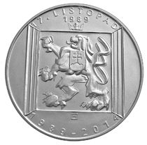 Dnem 12. listopadu 2014 vydává Česká národní banka pamětní stříbrnou dvousetkorunu k 25. výročí událostí 17. listopadu 1989. Dvousetkoruna je ražena ze slitiny obsahující 925 dílů stříbra a 75 dílů mědi a vydává se ve dvojím provedení, v běžném a špičkovém (proof), které se liší povrchovou úpravou a provedením hrany. U mincí špičkové kvality je pole mince vysoce leštěné a reliéf je matován, hrana je hladká s vlysem „ČESKÁ NÁRODNÍ BANKA * Ag 0.925 * 13 g *“. Mince běžné kvality mají hranu vroubkovanou. Průměr mince je 31 mm, hmotnost 13g a síla je 2,2 mm. Stejně jako u každé ražby mincí jsou i u těchto mincí povoleny odchylky v průměru 0,1 mm a v síle 0,15 mm. V hmotnosti je povolena odchylka nahoru 0,26 g a v obsahu stříbra odchylka nahoru 1 %.