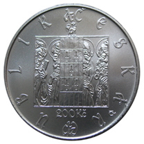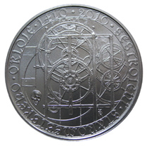 Dnem 17. března 2010 vydává Česká národní banka do oběhu pamětní stříbrnou dvousetkorunu k 600. výročí sestrojení významné pražské památky, Staroměstského orloje. Dvousetkoruna je ražena ze slitiny obsahující 900 dílů stříbra a 100 dílů mědi a vydává se ve dvojím provedení, v běžném a špičkovém (proof), které se liší povrchovou úpravou a provedením hrany. U mincí špičkové kvality je pole mince vysoce leštěné a reliéf je matován, hrana je hladká s vlysem „ČESKÁ NÁRODNÍ BANKA * Ag 0.900 * 13 g *“. Mince běžné kvality mají hranu vroubkovanou. Průměr mince je 31 mm, hmotnost 13 g a síla je 2,3 mm. Stejně jako u každé ražby mincí jsou i u těchto mincí povoleny odchylky v průměru 0,1 mm a v síle 0,15 mm. V hmotnosti je povolena odchylka nahoru 0,26 g a v obsahu stříbra odchylka nahoru 1%.