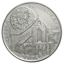 Dnem 19. června 2013 vydává Česká národní banka pamětní stříbrnou dvousetkorunu k 750. výročí založení kláštera Zlatá Koruna. Dvousetkoruna je ražena ze slitiny obsahující 925 dílů stříbra a 75 dílů mědi a vydává se ve dvojím provedení, v běžném a špičkovém (proof), které se liší povrchovou úpravou a provedením hrany. U mincí špičkové kvality je pole mince vysoce leštěné a reliéf je matován, hrana je hladká s vlysem „ČESKÁ NÁRODNÍ BANKA * Ag 0.925 * 13 g *“. Mince běžné kvality mají hranu vroubkovanou. Průměr mince je 31 mm, hmotnost 13 g a síla je 2,35 mm. Stejně jako u každé ražby mincí jsou i u těchto mincí povoleny odchylky v průměru 0,1 mm a v síle 0,15 mm. V hmotnosti je povolena odchylka nahoru 0,26 g a v obsahu stříbra odchylka nahoru 1%.