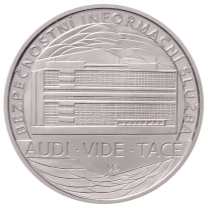 Dnem 21. srpna 2024 vydává Česká národní banka pamětní stříbrnou stokorunu s motivem Bezpečnostní informační služby z cyklu Instituce České republiky. Stokoruna je ražena ze slitiny obsahující 925 dílů stříbra a 75 dílů mědi a vydává se pouze ve špičkovém (proof) provedení. Mince ve špičkové kvalitě má pole mince vysoce leštěné a reliéf je matován, hrana je hladká. Průměr mince je 29 mm, hmotnost 9 g a síla je 1,8 mm. Stejně jako u každé ražby mincí jsou i u těchto mincí povoleny odchylky v průměru 0,1 mm a v síle 0,15 mm. V hmotnosti je povolena odchylka nahoru 0,18 g a v obsahu stříbra odchylka nahoru 1 %.
