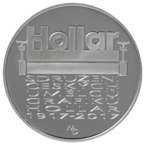 Dnem 4. října 2017 vydává Česká národní banka pamětní stříbrnou dvousetkorunu ke 100. výročí založení Sdružení českých umělců grafiků Hollar. Dvousetkoruna je ražena ze slitiny obsahující 925 dílů stříbra a 75 dílů mědi a vydává se ve dvojím provedení, v běžném a špičkovém (proof), které se liší povrchovou úpravou a provedením hrany. U mincí špičkové kvality je pole mince vysoce leštěné a reliéf je matován, hrana je hladká s vlysem „ČESKÁ NÁRODNÍ BANKA * Ag 0.925 * 13 g *“. Mince běžné kvality mají hranu vroubkovanou. Průměr mince je 31 mm, hmotnost 13 g a síla je 2,3 mm. Stejně jako u každé ražby mincí jsou i u těchto mincí povoleny odchylky v průměru 0,1 mm a v síle 0,15 mm. V hmotnosti je povolena odchylka nahoru 0,26 g a v obsahu stříbra odchylka nahoru 1 %.