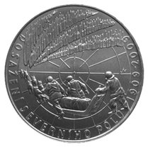 Dnem 4. března 2009 vydává Česká národní banka do oběhu pamětní stříbrnou dvousetkorunu ke 100. výročí dosažení severního pólu polárníkem Robertem Pearym. Dvousetkoruna je ražena ze slitiny obsahující 900 dílů stříbra a 100 dílů mědi a vydává se ve dvojím provedení, v běžném a špičkovém (proof), které se liší povrchovou úpravou a provedením hrany. U mincí špičkové kvality je pole mince vysoce leštěné a reliéf je matován, hrana je hladká s vlysem „ČESKÁ NÁRODNÍ BANKA * Ag 0.900 * 13 g *“. Mince běžné kvality mají hranu vroubkovanou. Průměr mince je 31 mm, hmotnost 13 g a síla je 2,35 mm. Stejně jako u každé ražby mincí jsou i u těchto mincí povoleny odchylky v průměru 0,1 mm a v síle 0,15 mm. V hmotnosti je povolena odchylka nahoru 0,26 g a v obsahu stříbra odchylka nahoru 1%.